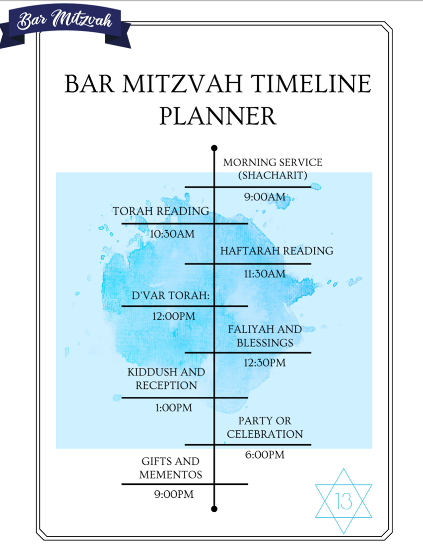 Whether you're planning a grand and elaborate celebration or a more intimate gathering, this Bar Mitzvah Timeline Planner is your essential companion for orchestrating a memorable and meaningful event. Start planning with confidence and create lasting memories for this special milestone in your family's life.