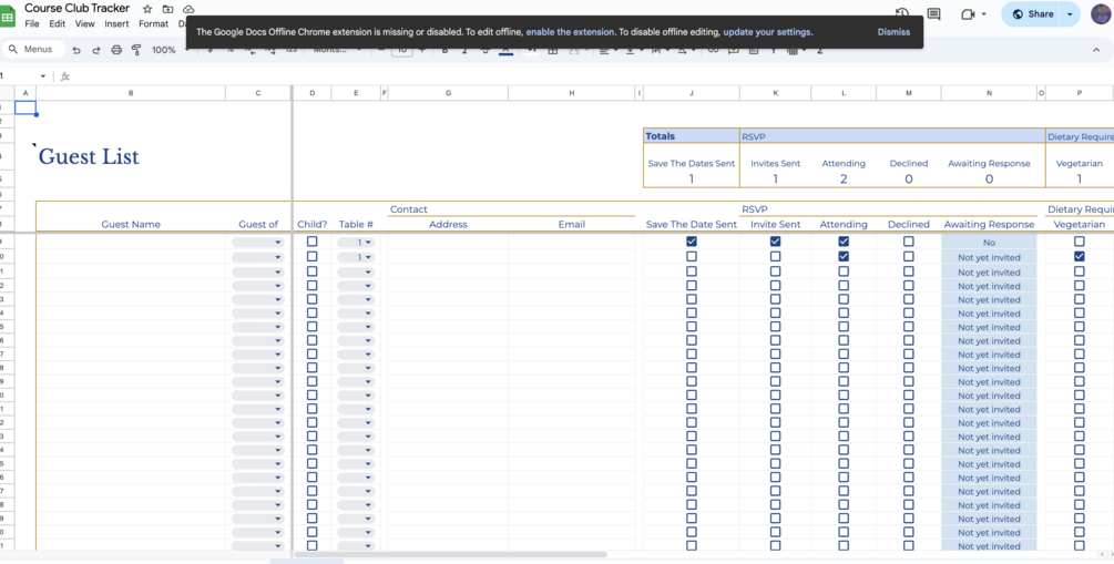 7. Fully Functional Google Sheet.** Seat Charts, Checklist/To-do list, Guest list tracker and more.